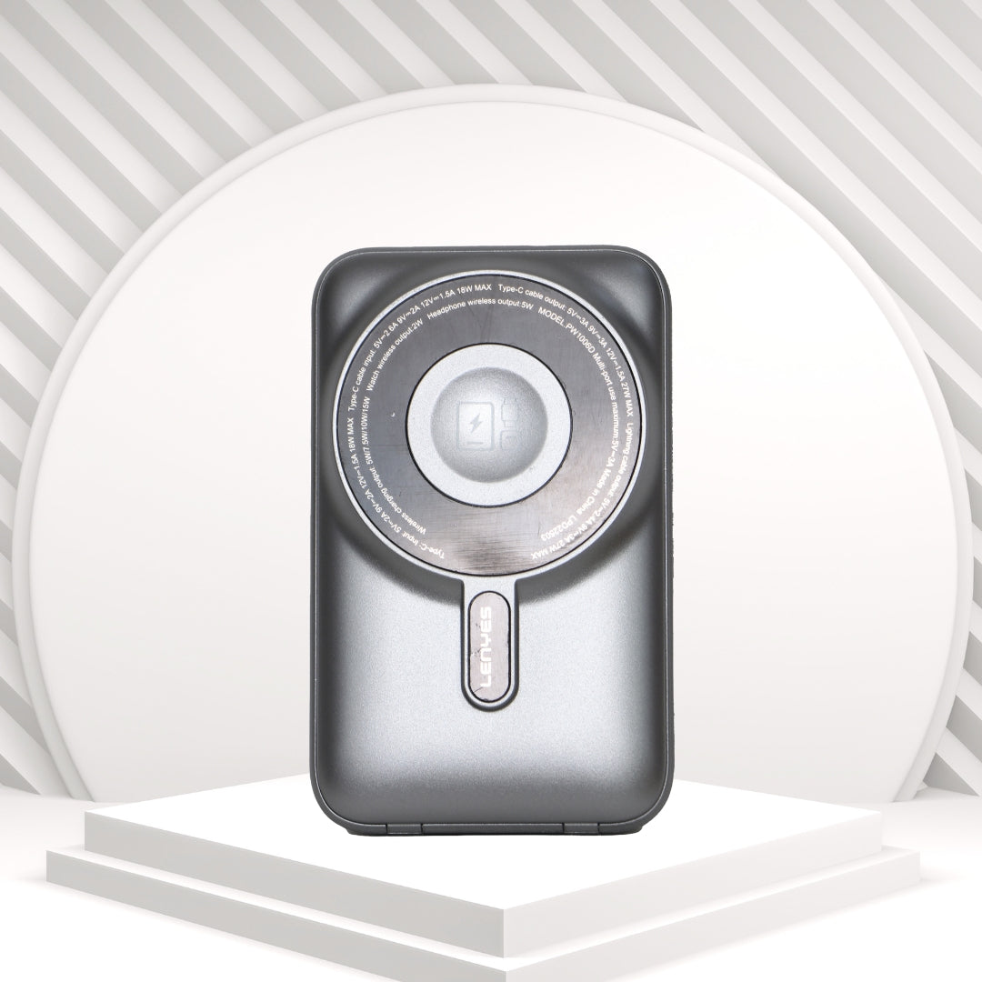 مدمج ولكنه قوي، يقدم بنك الطاقة اللاسلكي المغناطيسي من Lenyes بسعة 10,000 مللي أمبير كلاً من الشحن اللاسلكي والسلكي فائق السرعة — مثالي للاستخدام اليومي والسفر.