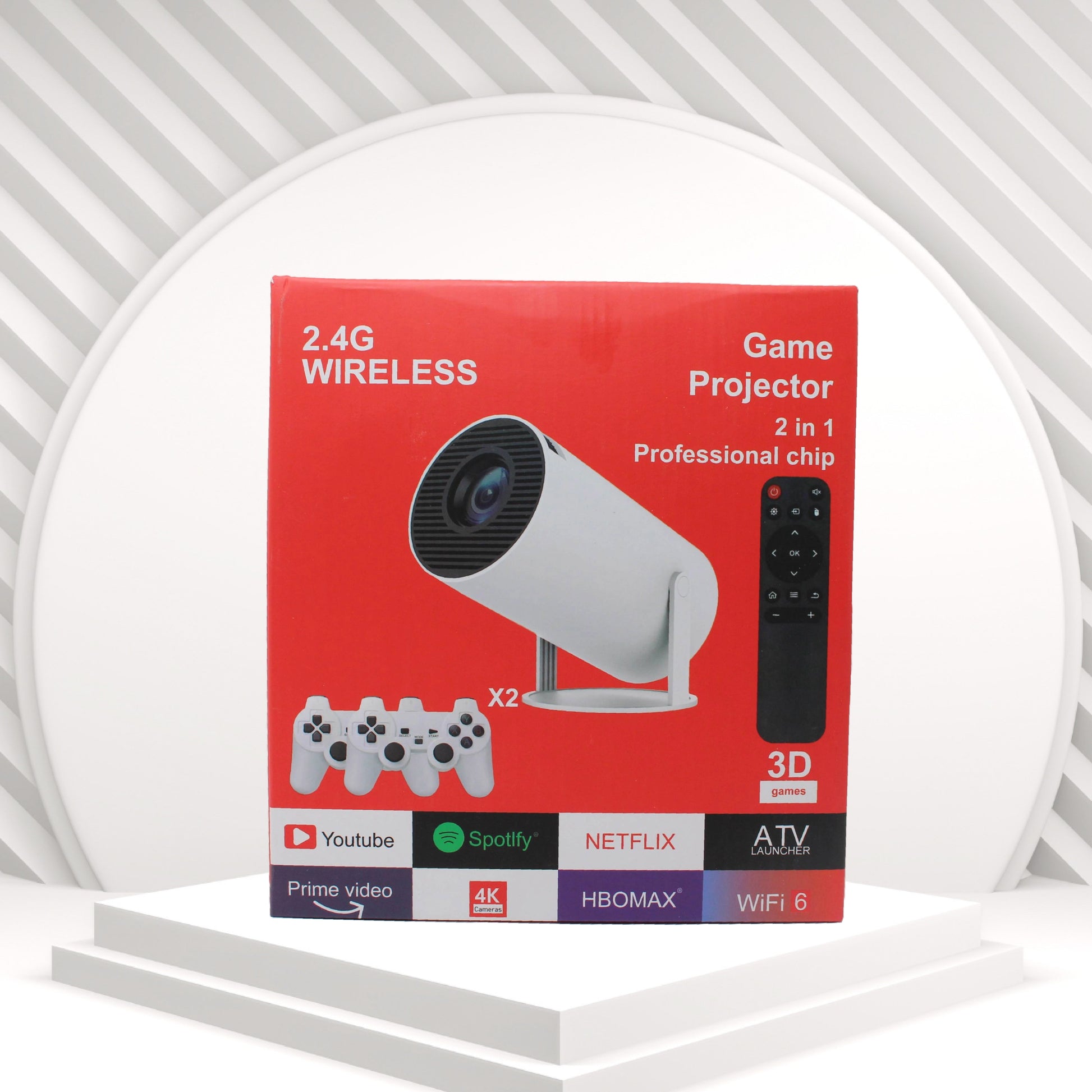 جهاز بروجكتور متعدد الوظائف يجمع بين العرض عالي الجودة والألعاب المدمجة — مزود بذراعين ألعاب لاسلكيين، ويدعم WiFi 6 وجميع تطبيقات البث الشهيرة.