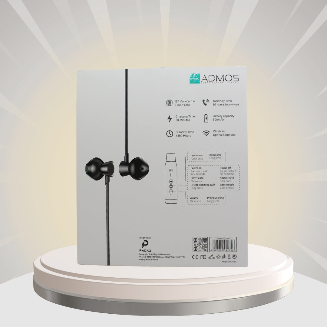 AM 642 أدْموس سماعة بلوتوث رياضية حول العنق باللون الأسود