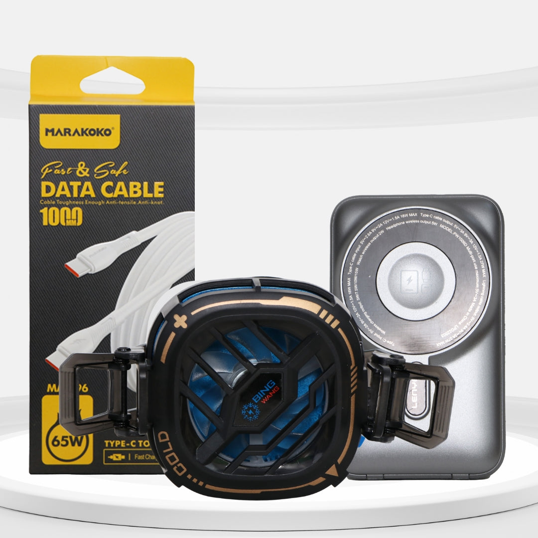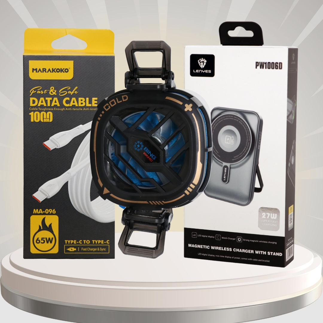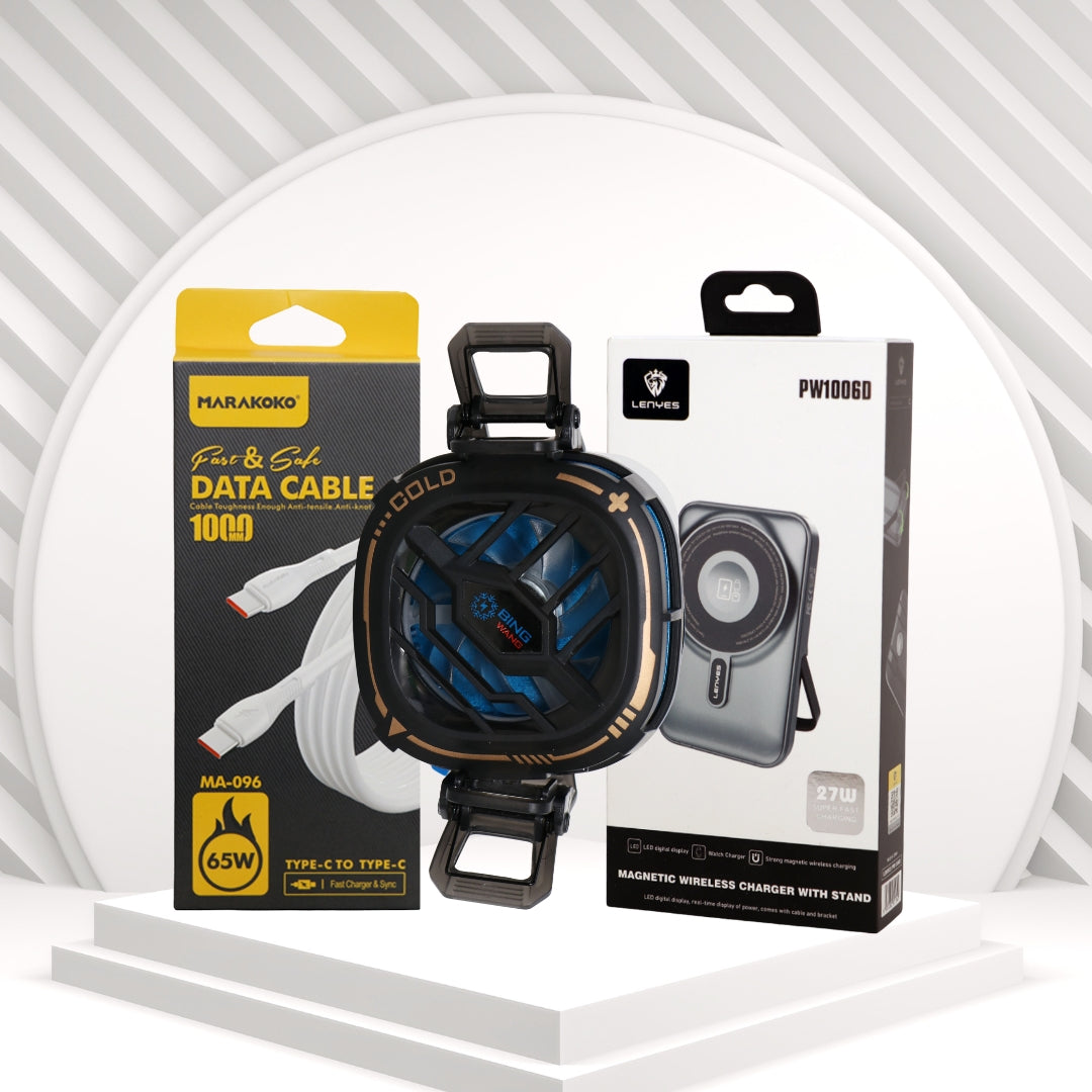 باقة قوية تجمع بين شاحن لاسلكي مغناطيسي 27W، ومبرد هاتف قابل للتثبيت، وكابل شحن سريع 65W—مصممة لمحبي الألعاب والاستخدام المكثف.