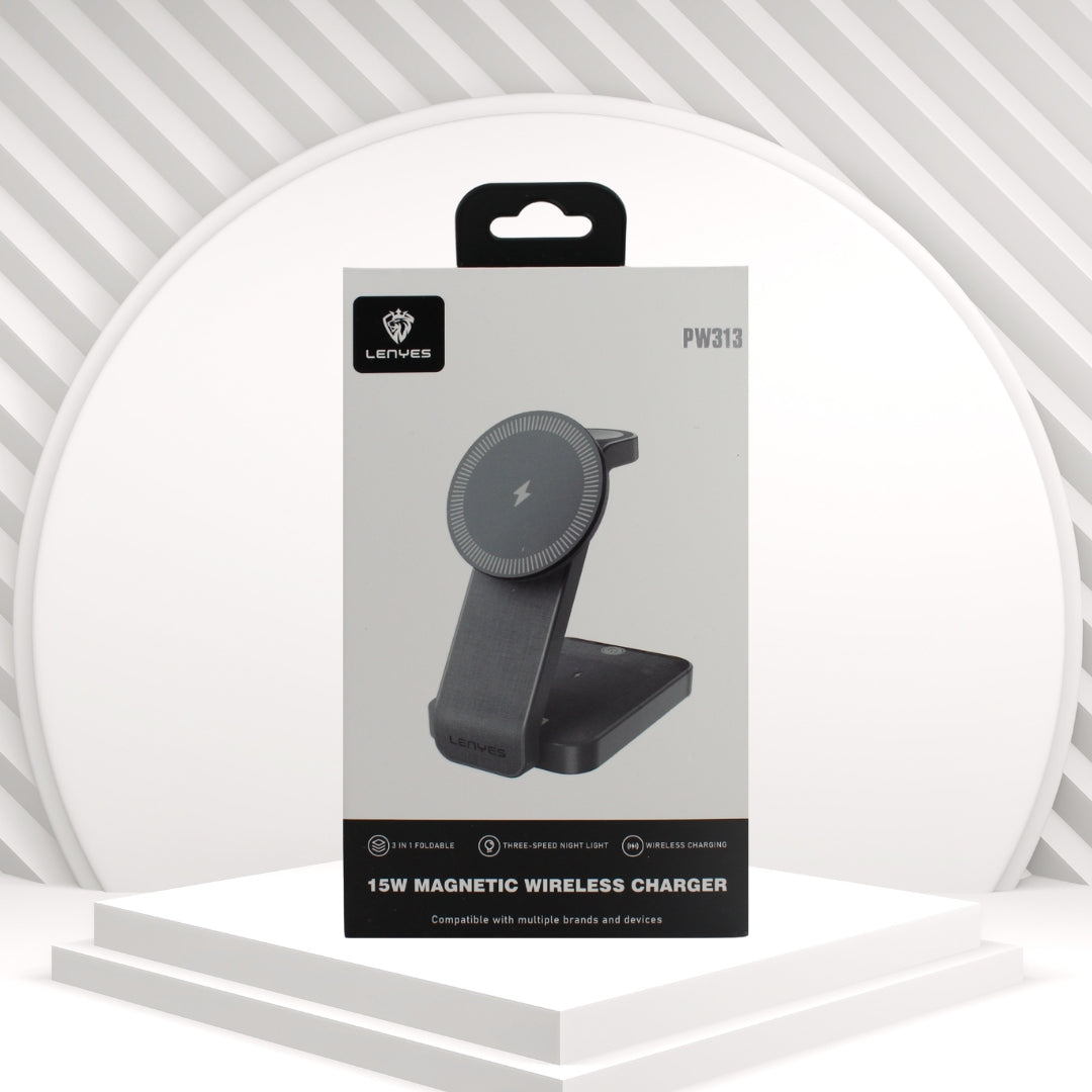 شاحن Lenyes PW313 اللاسلكي المغناطيسي 15 واط يمنحك شحنًا سريعًا وآمنًا مع تصميم عملي وأنيق يناسب جميع أجهزتك.